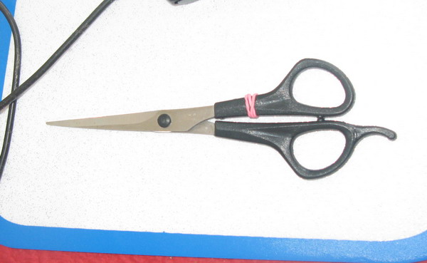 A это Dovo, купленные в грумстиле. Я их покупала в самом начале, до Роминых курсов. Не очень еще сооображая, как именно должны удобные ножницы в руку ложиться. Мы тогда всей группой с такими ножницами пришли:) Честно говоря, немного ими разочарована - они широковаты-тяжеловаты для меня. Ну и большой палец проваливается даже сквозь мега-резинку:) приделываю еще мега-устройство из скотча - ноу-хау Фомина:)