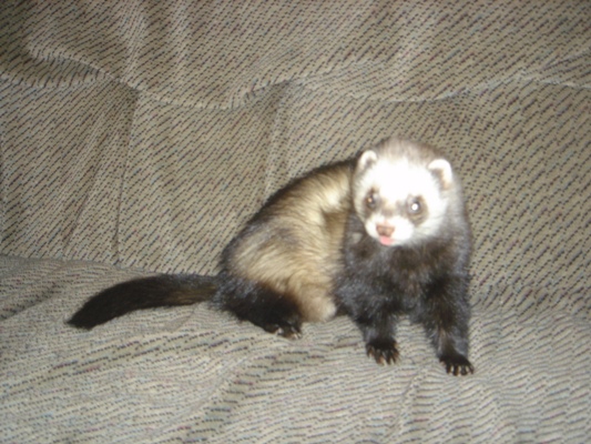 Хорек девочка, 9 месяцев, вместе с клеткой, поилкой, гамаком, она приучела к туалету, писает и какает в лоток в отдельный угол... внизу клетки... Не кусается, приученна к собакам!!! Если что, пишите в личку... |
