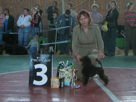 Я тоже хочу немножко похвастаться :))) У нас вчера была в Архангельске выставка (ранг не помню, нет каталога), эксперт Попова, С-Пб. Наши успехи: Маруся - ЛПП, BIG - 1 Рыжий бебик Цветная Акварель от Госпожи Паниной - бест беби - 2 Малый чёрный Талисман Удачи от Госпожи Паниной - ЛПП, Лю, БИС юниоров!!! Собак было много, готовили до полшестого утра... встали в 7.00. Устали, но очень рады, что пуделей оценили по достоинству :) Фото делали на чужой фотик... пока не пришли. |