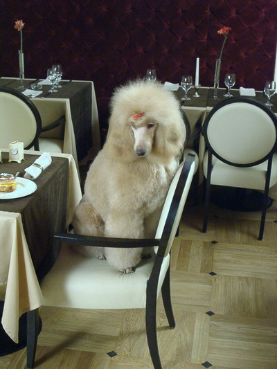 L.S., очень красиво. А какие у Киры глаза! И по-моему, большой пудель идеально вписывается в интерьер ресторана. :) ;) |