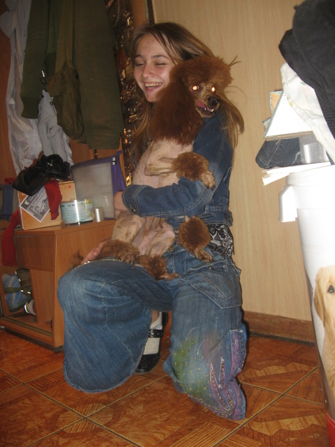 Про "юморное фото". Наверное у меня нет чувства юмора в достаточной степени, что бы оценить такую "юмороность". Тем паче такие вязки производятся в нашей породе слишком часто((( что отнюдь не приносит пользы... так что мне НЕ смешно... Outia, причем здесь вообще термин "породнились"??? Они бы пророднились в том случае, если бы заводчик известного питомника использовал кобеля принадлежащего или полученного в обсуждаемом питомнике. Тогда да, проднились. А повязаться с приличным кобелем может ЛЮБАЯ собачка, если хозяин кобеля согласен с такой постановкой вопроса. а с питомником с любым породниться дело еще менее сложное. Проще простого. Вот к примеру владельцы одного моего щенка считают, что их мальчик должен обязательно вязаться и вяжут кого ни попадя "пуделей условно" и внуки мои безродные от него теперь понародились в ассортименте((( и какое такое я как владелец дедушки этих, с позволения сказать пуделЕй, имею отношение? я вот думаю, что совершенно никакого... Справедливости ради хочу отметить, что в питомнике этом, судя по последним вязкам с чужими достойными кобелями, явно намечается прогресс и продвижение в сторону нормального разведения приличных собак. Но старое их разведение (судя по фото представленным на сайте) НЕ производит впечатления серьёзного подхода к племенной и выставочной работе направленной на улучшение и развитие породы Пудель. ИМХО. Да у любого может родиться слишком мелкий щенок. Но не обязательно с признаками карликовости и ещё такой нюанс - куда его заводчик денет - на диван в хорошие руки продаст без права племенного использования или себе для разведения оставит... на этом фото две сестры. Одну я оставила в питомнике, авторую же (100% полноценно не бракованную в целом выставочную девочку) продала на условиях запрещающих племенное использхование этой собаки. Потому что на мой взгляд она СЛИШКОМ мелкая. Я не знаю какого она сейчас роста, пару месяцев не стриглись, скоро должны появиться. Её более крупная сестра (которая на снимке срава) сейчас ростом 24,5 см. Возраст щенков - 6 мес. Конечно я не навязываю своей точки зрения (так как толку нет), и все желающие могут свободно разводить пуделей таких, как им нравится - хоть 15 см... Флаг им в руки!