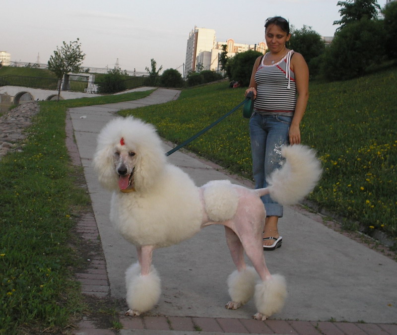 russgaja, мне кажется все же помпоны близковато к хвосту. У меня обычно задний край верхнего помпона только-только прикрывает выпирающую кость (или прощупывающуюся, если собака в кондиции). Нокаут, вид у модели в конце, во всяком случае, довольный. _______________________________________