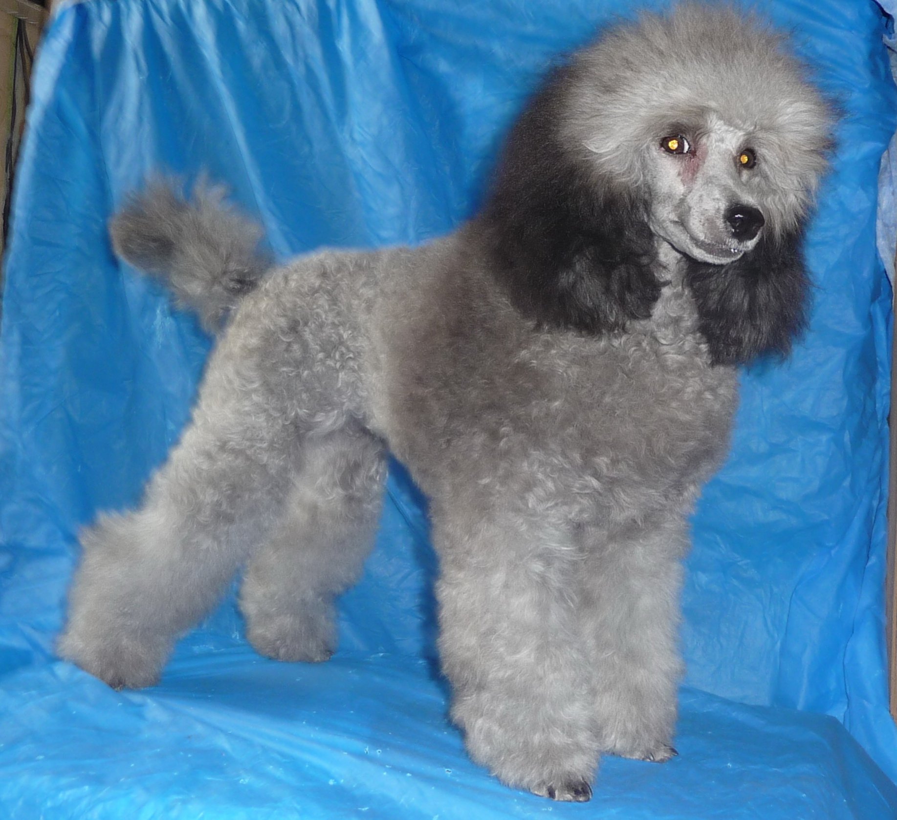 а моей маме стрижка понравилась-бритый пудель с лохматой головой :) это тут у меня одна девица такая рассекает-во время стрижки она сбежала с не стриженой шапкой . теперь такая Пугачева лысая бегает :) сейчас попробую свою Серость показать