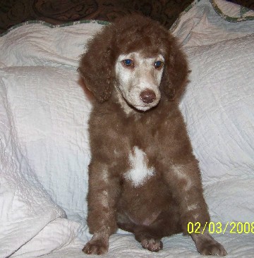 Пигментация носа-век-губ всегда более темная чем у коричневых пуделей и тоже с каким-то сиреневым или фиолетовым (баклажановым) оттенком.