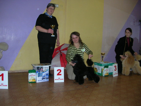 и спасибo за поздравления Барби причинила нам милый сюрприз и очень красиво кончила свои выступы в классе молодёжи, хотя судья Якубовски пропустил Барби на БИС Юниор, то на группе показалась очень эффектно и вместе со своей второй владелицей Анетой стали на первенстве ![]() ![]() ![]() ![]() Марина и Kinopoodle очень мы благодарим вам за нашу / вашу куколку