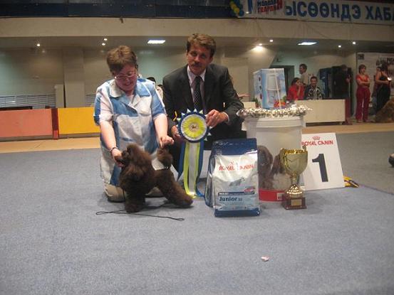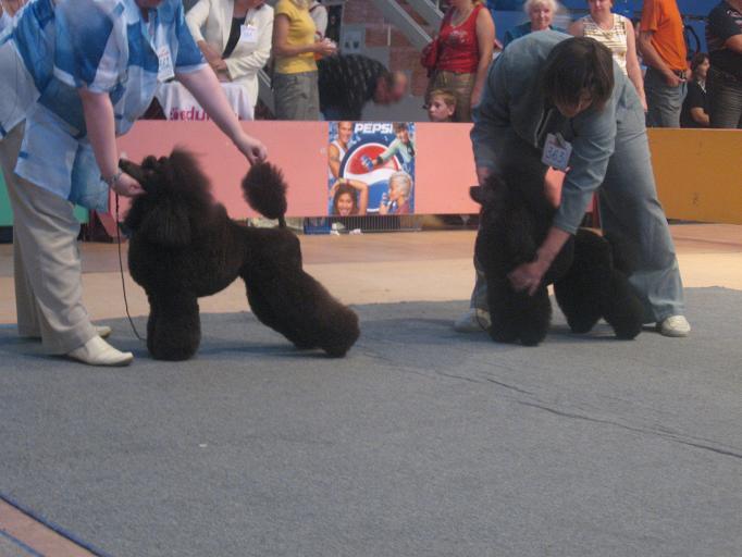 ПУДЕЛЬ МИНИАТЮРНЫЙ Современный окрас Кобель. Класс чемпионов 356 ДЕЛИСС СЕРПАНТИН УМБРИЭЛЬ (красн) (Делисс Серпантин Эльдорадо х Делисс Серпантин Фантастика) вл. Филоненко-Чоповская, Омск CAC, CACIB, ВОB Сука. Класс чемпионов 357 МЭДЖИК МИСТЕРИ МАЙА МЕЛИАН (красн) (Делисс Серпантин Умбриэль х Мэджик Мистери Ювеналия) вл. Филоненко-Чоповская, Омск CAC, CACIB фоток с ринга нет - фотограф бегал по кругу без фотика, но с пуделями))) только вот такое, не очень пристойное - возле наградного ринга на фото ДС УМБРИЭЛЬ
