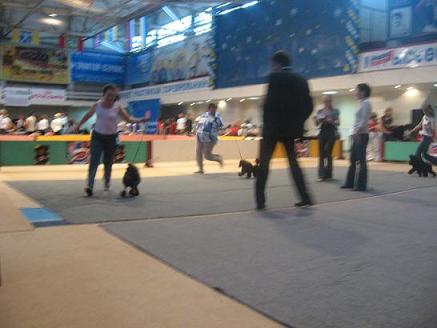 Кобель. Класс Промежуточный 364 ЛЮСМО ШАЛУНИШКА (чёрн) (Славян Рашн Бой х Люсмо Надменная Фея) вл. Московченко, Берёзовский CAC, CACIB с фотками тоев опять напряг,тк внезапно прямо в ринге я неожиданно узнаю, что должна помочь вытавить собак на сравнение осмотр на столе))) |