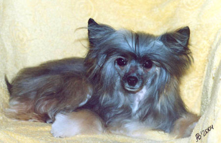... и очаровательная девочка по имени Бусина (с ударением на И почему-то) ее собственного разведения. Совершенно крохотная собачка, а мордаха весьма симпатичная, чего так часто не хватает той-породам.