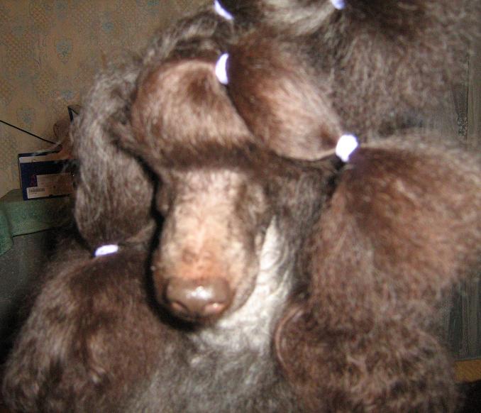 Никогда не умела излагать свои мысли на бумаге, так что не судите строго. В отличии от многих здесь собравшихся, я никогда не мечтала о пуделе. Когда я достигла возраста, когда дети начинают чего-то хотеть, я захотела просто СОБАКУ! Мама никогда не препятствовала мне в желании завести кого-нибудь, так как сама является любителем всякой живности, поэтому вскоре (это было лето 87 года, мне было 5,5 лет) в нашем доме появился щенок той-терьера. Это был мальчик без документов, фенотипически вполне нормальный той, но слегка переросток (рост около 27 см, вес примерно 3,5 кг). Проблем с именем не возникло, щенка назвали Прошка, в честь предыдущего тоя Прошки, который жил у мамы до моего рождения. Знаний, по содержанию и кормлению собак, не было никаких, да и научить было некому. За 9,5 лет которые прожил Прошка у него не было ни одной прививки. В пять месяцев он заболел, по «клинике» это похоже была кишечная форма чумы, а может что еще. Вет.клиник в то время просто не было и чем лечить никто не знал. Помню только, как Проша лежал на кухне под столом на одеяле и выползал только чтобы пописать. Малыш боролся со своим недугом сам и смог его победить. Кормили собаку всем «самым вкусным»: супчик, колбаска, а главный деликатес – куриные косточки. Вопчем, как вспомню, так вздрогну! Если бы я сейчас узнала, что кто-то так кормит моего щенка – убила бы на месте!!!!!!! Прошка был очень самостоятельный парень и гулять он предпочитал сам. Выходил из дома он как приличная собака при полном параде: шлейка, поводок, хозяйка, и спокойно гулял до тех пор пока его кто- или что-нибудь не заинтересует, после этого он буквально за несколько секунд вылезал из шлейки и бежал в нужном ЕМУ направлении. После того, как он несколько раз убегал, а затем через несколько часов или дней приходил домой, домашние решили что никуда он не денется и если ему так нравится, то пусть гуляет один. Это его в конце концов и погубило. Авторитетом для Проши была мама, меня он ни во что не ставил, мог укусить, не пускал в кресло, которое считал своим, воровал и не отдавал игрушки. |
