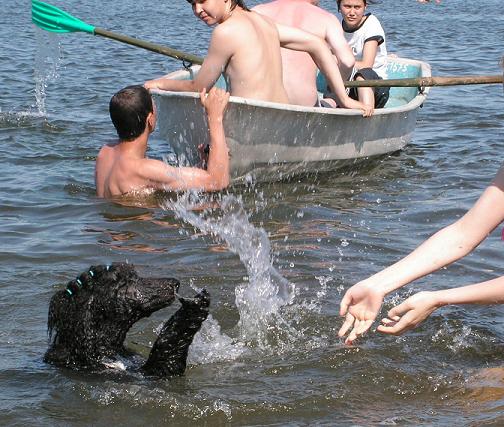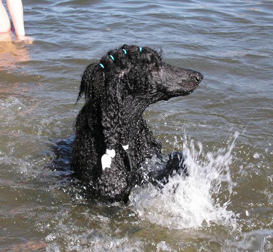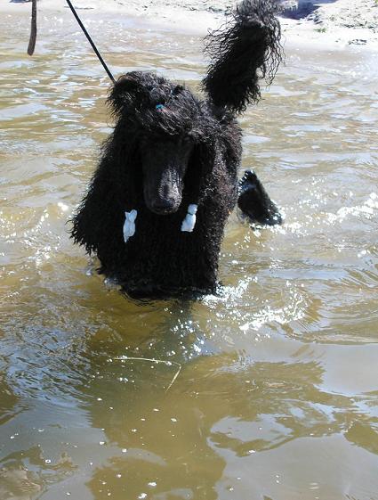 Когда Кирюшенька купалась первый раз, в Озерске, то мне несколько раз приходилось вытаскивать ее из под воды, т.к. собака плавает не так как надо