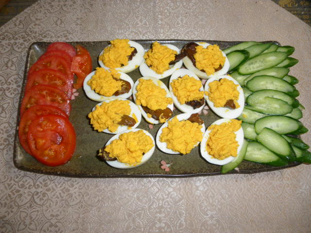 А это я делала: фаршированные яйца с копчёными устрицами.