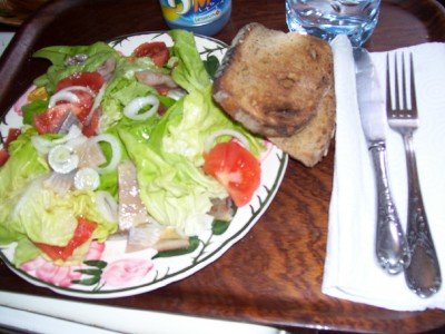 Вот чего она наворотила: зелёный салат, селёдку, лук, помидоры, лимон и подсолнечное масло. Хлеб ессно поджаренный в тостере. Вкусно, сытно, некалорийно, тока можно было бы и картошинку одну отварить, и сока лимона чуть поменьше, а то челюсти немножко свело ![]() |