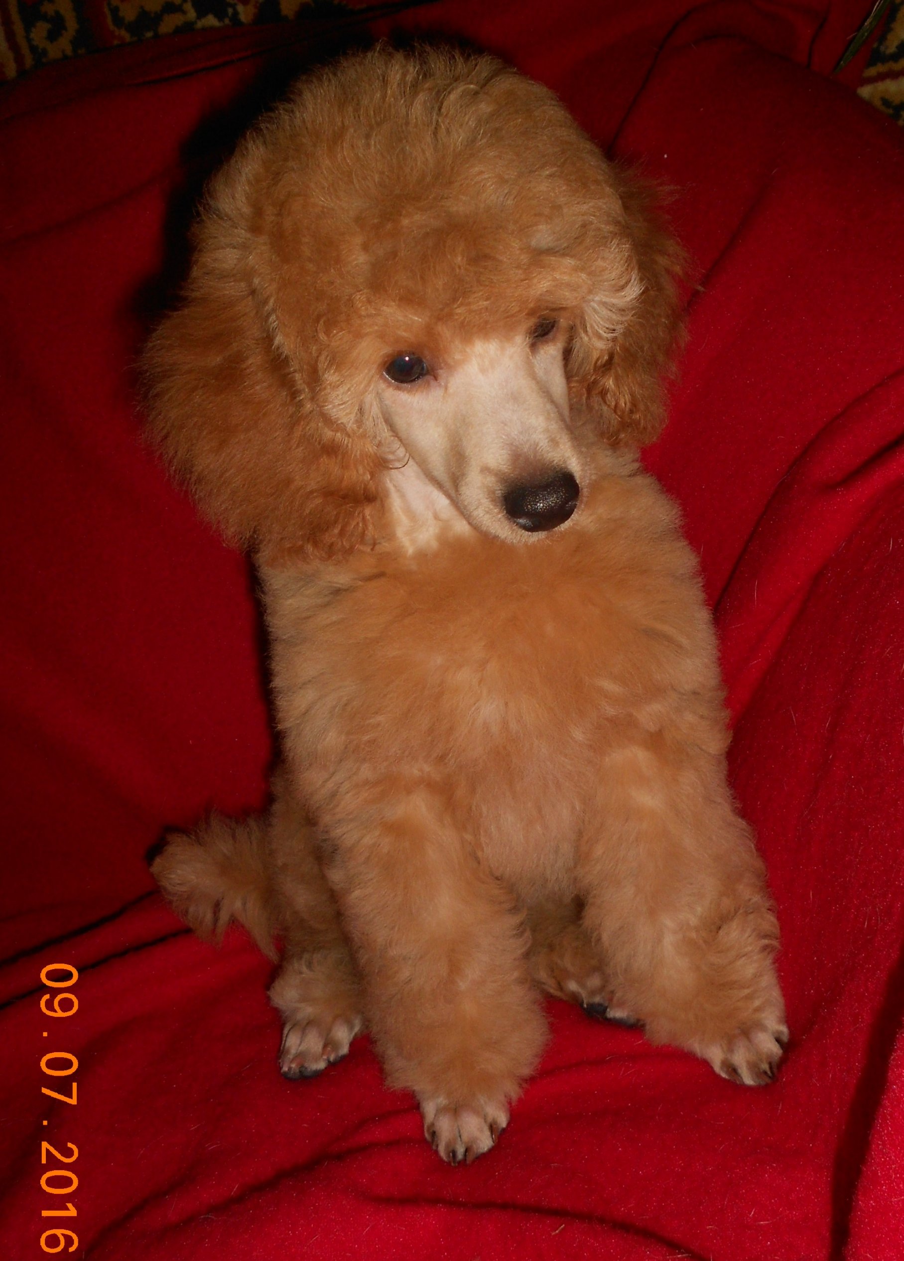 и наш красавец МАКС, АНСВЕЛ МАКСИМИЛИАН- кобель абрикосового окраса, крупный рост в 2 месяца 24 см. вес 3 кг. очень статный, прекрасно сложен, море шерсти насыщенного ровного окраса, характер джентельмена, знает себе цену. ищет выставочные ручки, так как жаль такую красоту на диван.