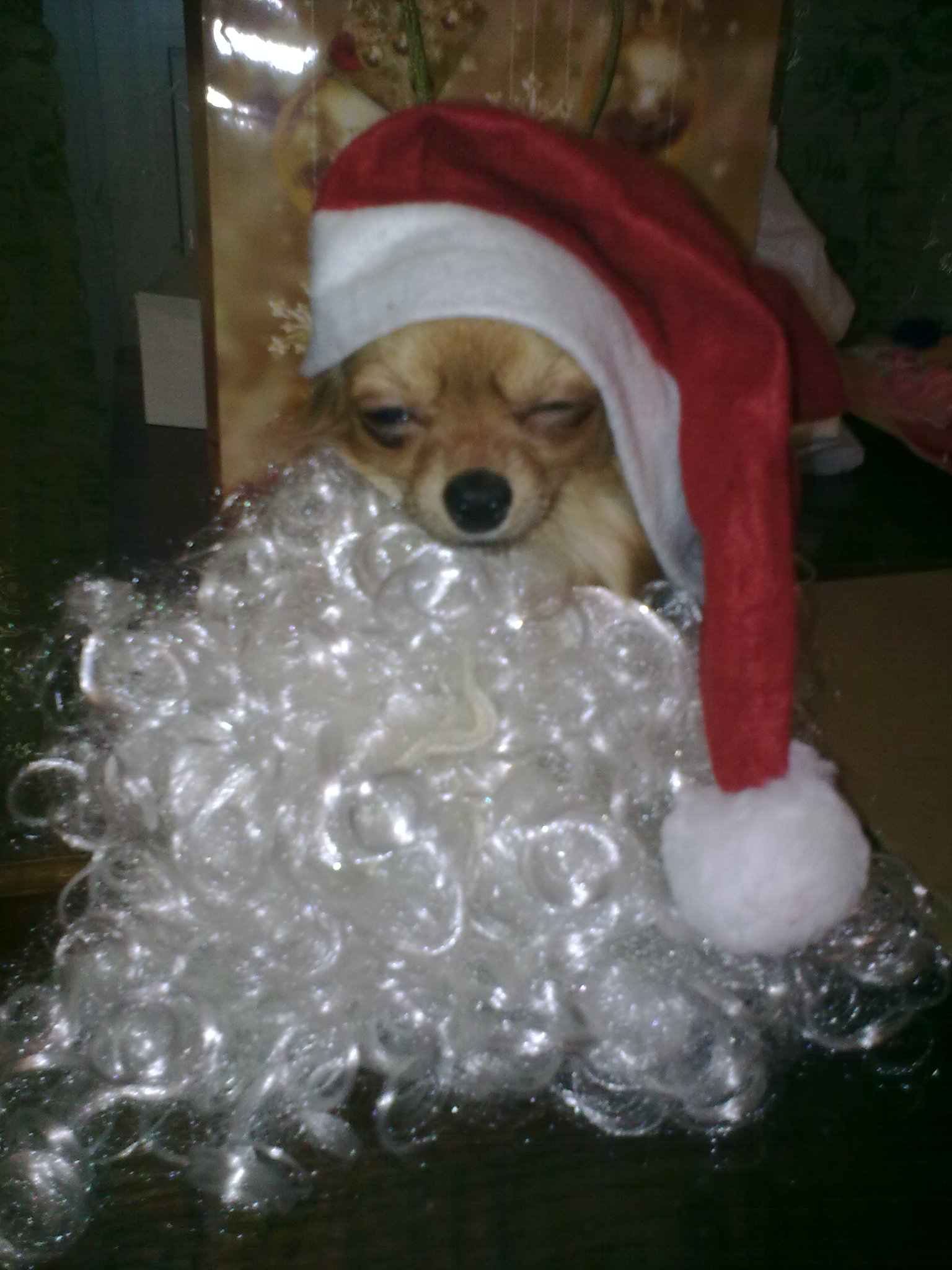 Всем привет и поздравления со Старым Новым Годом!!!!У Бусинки-Чаровницы первый новый год,первые прогулки,Первая елка.Рита(Чарующий Соблазн)-Дед Мороз бывалый...В Сокольниках были.Готовимся потихонечку к выставкам.