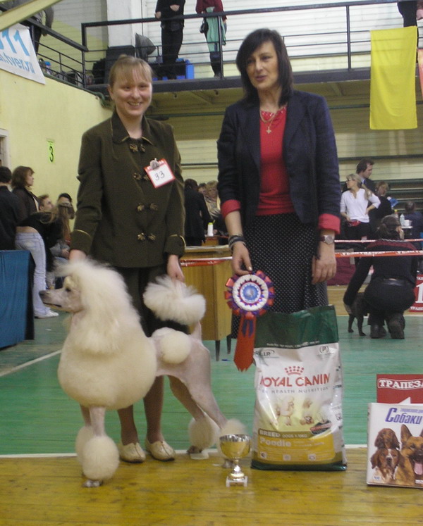 Лучшие большие монопородной выставки в Твери: Анаис-Анаис от Гвендолен (BIS) и Шанс Бижу Лизетта. Тут хорошо видна Лизетта. Приятно, что больших на выставке было показано целых четыре, в то время как скажем малых всего три. |