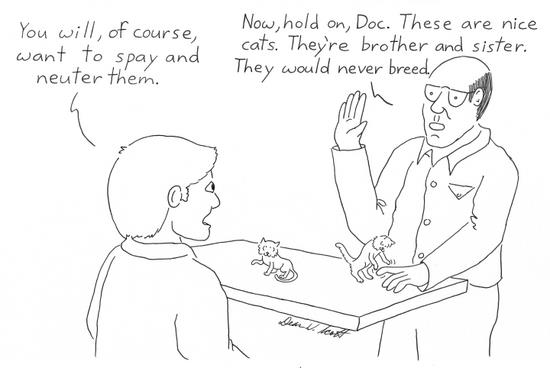 -Конечно, их следует кастрировать -Что Вы, доктор, они же порядочные киски, брат и сестра так что они плодиться не будут _______________________________________