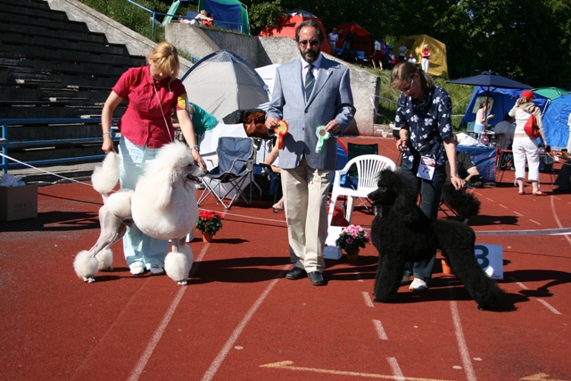 Результаты в Малых Юниоры 1. Ямит Мускат Паскаль- Лучший юниор. 2. Робин Светы Кизиной Кобели 1. Кобель из Финляндии(кличку, к сожалению, не знаю) -лучший кобель 2. Ямит Мускат Паскаль-второй в сравнении на лучшего кобеля 3. Карнавал из Цветочной Поляны-третий в сравнении на лучшего кобеля. Суки 1. DEMI MOORE - Лучшая сука, Лучший Представитель Породы. 2. Колибри из Цветочной Поляны - вторая в классе, вторая в сравнении на лучшую суку. И Паскаль стал вторым в Бесте юниоров. Judge for poodles Svein Helgesen, Norway. (Пишу только те имена собак, которые знаю). Поздравляю Олю Бочкареву и Полину Курбацкую с отличными результатами!!!! Поздравляем Деми Мур, Карнавала, Колибри с Чемпионом Эстонии! И Поздравляем их достойную смену Паскаля и Робина с Юным Чемпионом Эстонии! Спасибо большое Таллину за теплый радушный прием и хорошую организацию выставок!!!