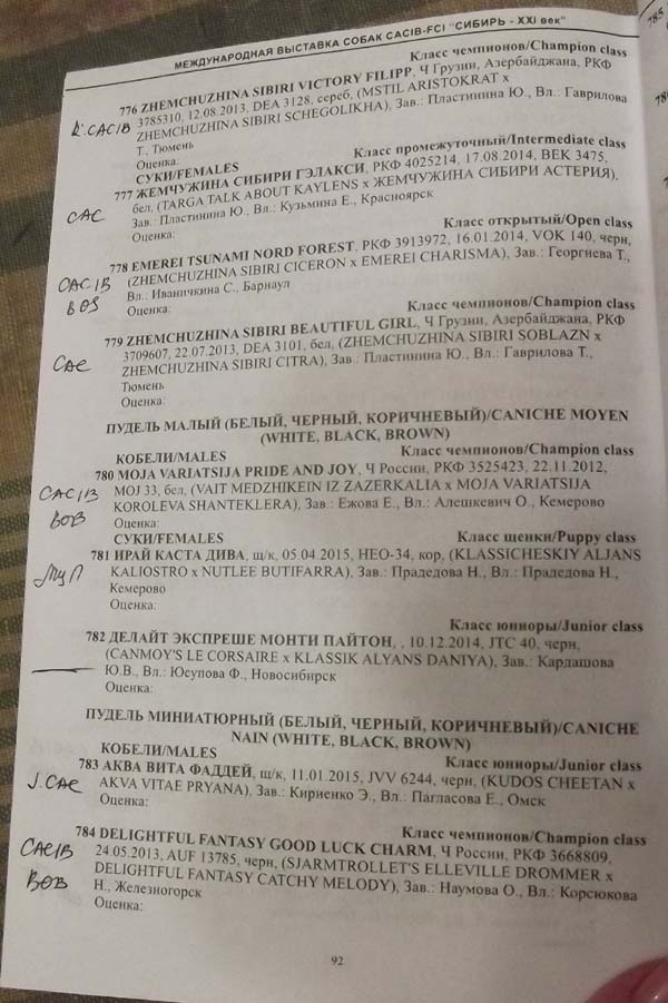 МЕЖДУНАРОДНАЯ ВЫСТАВКА СОБАК "СИБИРЬ - XXI ВЕК" 1. 2015-12-12 CACIB Novosibirsk - Poodle, CANICHE GRAND (WHITE, BLACK, BROWN), Males, BOS - https://youtu.be/R4T_6igjP7E 2. 2015-12-12 CACIB Novosibirsk - Poodle, CANICHE GRAND (WHITE, BLACK, BROWN), FEMALES - https://youtu.be/xdJO0JDU2Ig 3. 2015-12-12 CACIB Novosibirsk - Poodle, CANICHE GRAND (WHITE, BLACK, BROWN), FEMALES, BOS https://youtu.be/wC4Zf_T9zjQ 4. 2015-12-12 CACIB Novosibirsk - Poodle, CANICHE GRAND (WHITE, BLACK, BROWN), BOB - https://youtu.be/yriY80BP3TI 5. 2015-12-12 CACIB Novosibirsk - Poodle, CANICHE MOYEN (WHITE, BLACK, BROWN), Male, Champion class - https://youtu.be/by07B4Awkfs 6. 2015-12-12 CACIB Novosibirsk - Poodle, CANICHE MOYEN (WHITE, BLACK, BROWN), Female, Puppy class - https://youtu.be/z6EvhcmPgGk 7. 2015-12-12 CACIB Novosibirsk - Poodle, CANICHE NAIN (WHITE, BLACK, BROWN), MALE, Junior class - https://youtu.be/j9gl3J9FvFw 8.2015-12-12 CACIB Novosibirsk - Poodle, CANICHE NAIN (WHITE, BLACK, BROWN), FEMALE, Junior class - https://youtu.be/APOUqPiDc8I 9. 2015-12-12 CACIB Novosibirsk - Poodle, CANICHE NAIN (WHITE, BLACK, BROWN), MALE, Champion class - https://youtu.be/adhWpi4w9oI 10.2015-12-12 CACIB Novosibirsk - Poodle, CANICHE NAIN (WHITE, BLACK, BROWN), FEMALE, Open class - https://youtu.be/w-EXcTWUWHk 11. 2015-12-12 CACIB Novosibirsk - Poodle, CANICHE NAIN (WHITE, BLACK, BROWN), BOB - https://youtu.be/cBz2AX45_Ww 12. 2015-12-12 CACIB Novosibirsk - Poodle, CANICHE NAIN (SILVER, APRICOT), Males, Champion class, BOS - https://youtu.be/GOKR5x9Y6mU 13. 2015-12-12 CACIB Novosibirsk - Poodle, CANICHE NAIN (SILVER, APRICOT), Females, Champion class, BOS - https://youtu.be/5e3NcvDB708 14. 2015-12-12 CACIB Novosibirsk - Poodle, CANICHE NAIN (SILVER, APRICOT), BOB - https://youtu.be/AHu2Jg7BxoU 15. 2015-12-12 CACIB Novosibirsk - Poodle, CANICHE MINIATURE TOY, FEMALE, Champion class - https://youtu.be/RN4hudSBr68 Возможно что-то напутала. Второй день тоже есть видео, только не все, опоздала к началу ринга. _______________________________________